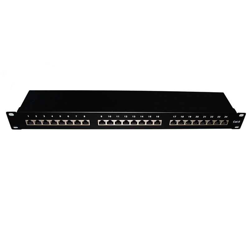 | Ce panneau de brassage à monter dans un coffret mural ou une armoire 19 pouces est doté de 24 connecteurs RJ45 Femelle catégorie 6 FTP. | |